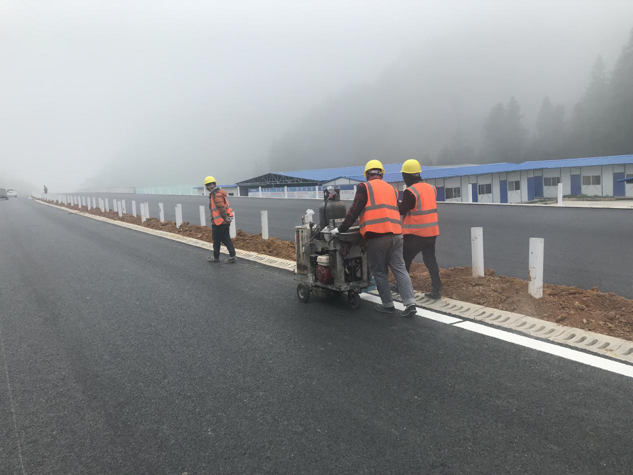 項(xiàng)目部人員進(jìn)行交安標(biāo)線施工