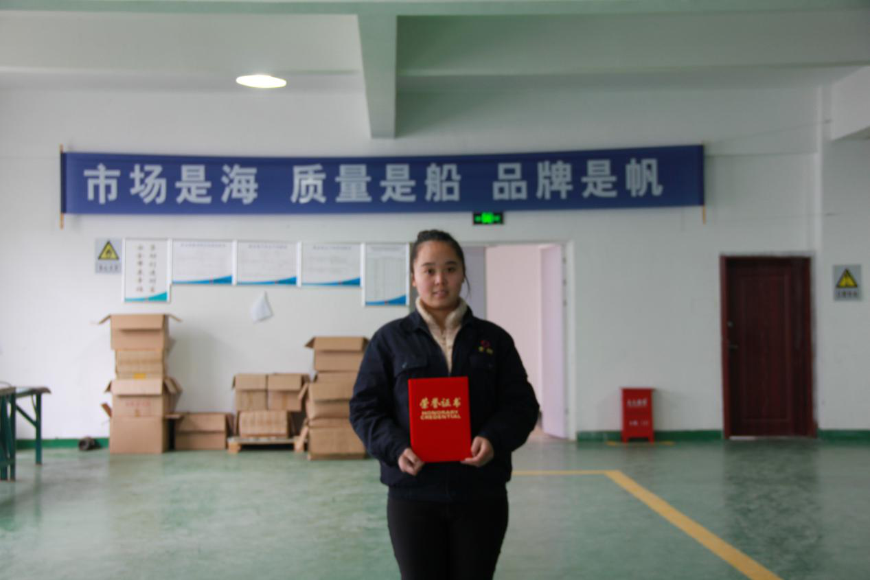 2017年1月田潔在車間技能比武活動(dòng)中獲得“最佳生產(chǎn)工藝獎(jiǎng)”