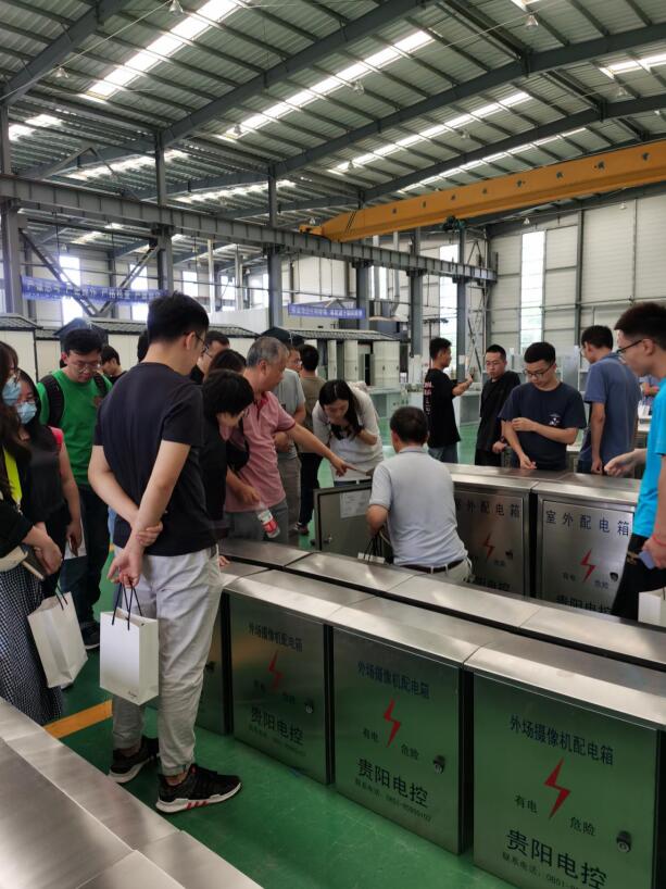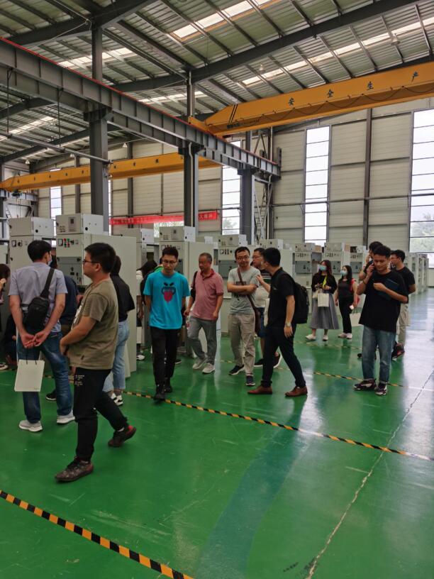 參會(huì)人員在電控柜生產(chǎn)車間參觀