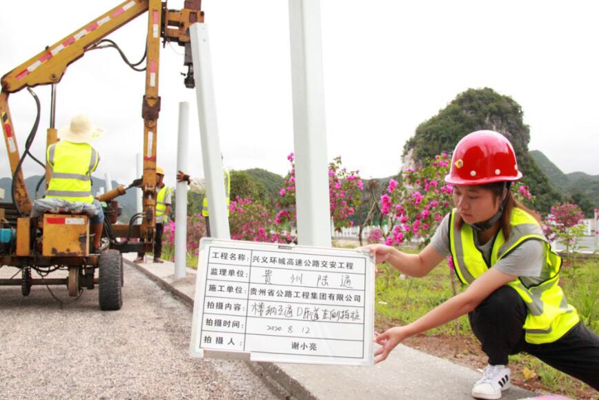 2019年12月因工作需要吳靖調(diào)到了興義環(huán)高機(jī)電交安項(xiàng)目部質(zhì)安科工作,主要從事施工安全管理、監(jiān)督、檢查工作,還要兼顧工程質(zhì)量資料的內(nèi)外業(yè)聯(lián)絡(luò),每天必須深入工地現(xiàn)場監(jiān)督檢查安全技術(shù)操作規(guī)范,掌握安全生產(chǎn)情況,發(fā)現(xiàn)安全隱患及時(shí)匯報(bào)并提出整改意見等事務(wù)。剛來到興環(huán)項(xiàng)目部時(shí),吳靖心里存在一些壓力,因是公司樹立的“品質(zhì)工程”項(xiàng)目,又是第一次在項(xiàng)目部具體從事安全工作,盡管如此,這個(gè)剛從學(xué)校畢業(yè)不久,經(jīng)過短暫鍛煉的年輕人還是一馬當(dāng)先地當(dāng)上了工地安全管理員,每天清早不到8點(diǎn)鐘,筆者與她和項(xiàng)目部其它工作人員一起出發(fā),穿上安全馬甲,戴上安全帽來到施工現(xiàn)場檢查,每天都是從項(xiàng)目部到工地重復(fù)著二點(diǎn)一線的工作路線,從到達(dá)現(xiàn)場開始,就檢查施工作業(yè)人員是否按規(guī)范操作,是否佩戴安全帽,高空作業(yè)是否系安全帶,作業(yè)區(qū)域是否設(shè)置警示標(biāo)志等都要逐一詢問查看,不放過任何細(xì)節(jié)。