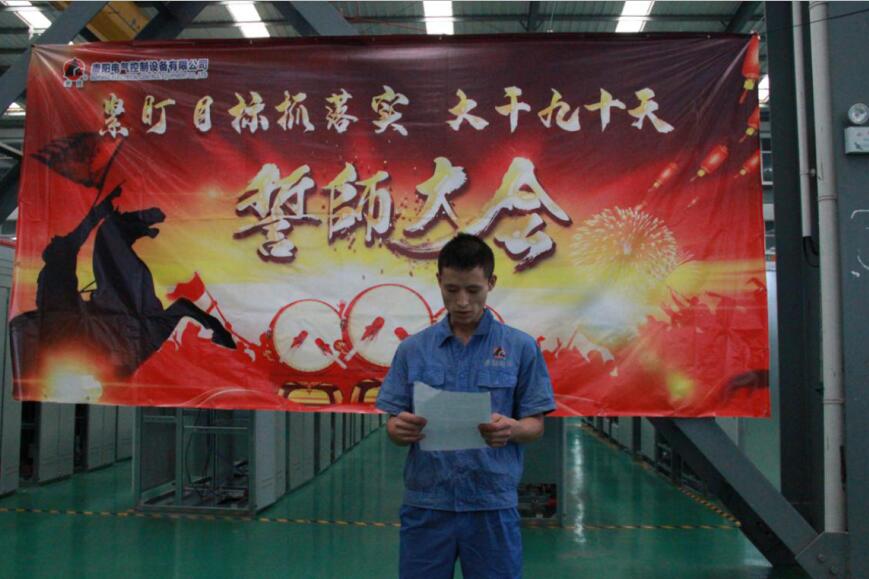 為進一步調(diào)動全體職工生產(chǎn)積極性,促進全年生產(chǎn)經(jīng)營目標任務的順利實現(xiàn),9月17日上午10時,貴控公司在生產(chǎn)車間舉行了“緊盯目標抓落實,大干九十天”誓師大會,公司領導班子全體成員以及司屬各部門人員共計:100余人參加了此次大會。
