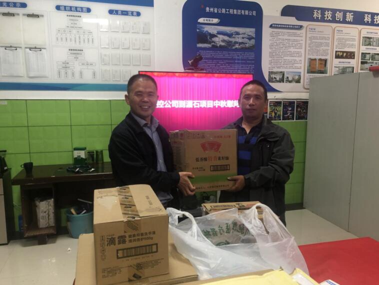 金秋桂丹飄香時(shí),雙節(jié)慰問暖人心。在中秋國慶節(jié)來臨之際,9月27-28日,貴控公司工會(huì)組織的中秋國慶2個(gè)慰問小組,在王勇書記和方煜總經(jīng)理的帶隊(duì)下分別赴興義環(huán)高機(jī)電交安項(xiàng)目部和湄潭石阡機(jī)電交安項(xiàng)目部開展中秋國慶雙節(jié)慰問活動(dòng),為堅(jiān)守在施工一線的員工,送上了中秋月餅、水果和食用油等慰問品,帶去了節(jié)日的祝福和問候。