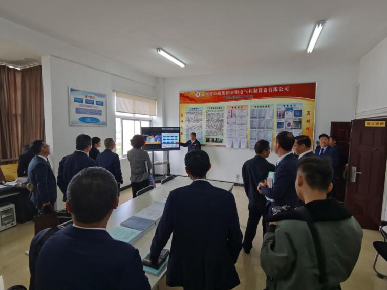 在貴控公司黨支部書記、執(zhí)行董事王勇及班子成員的陪同下,與會人員先后參觀了電控柜生產(chǎn)車間、高速公路智能配電運維數(shù)據(jù)中心、田震勞模創(chuàng)新工作室、企業(yè)職工文化室及宣傳展版,隨后,在三樓會議室進行交流座談。
