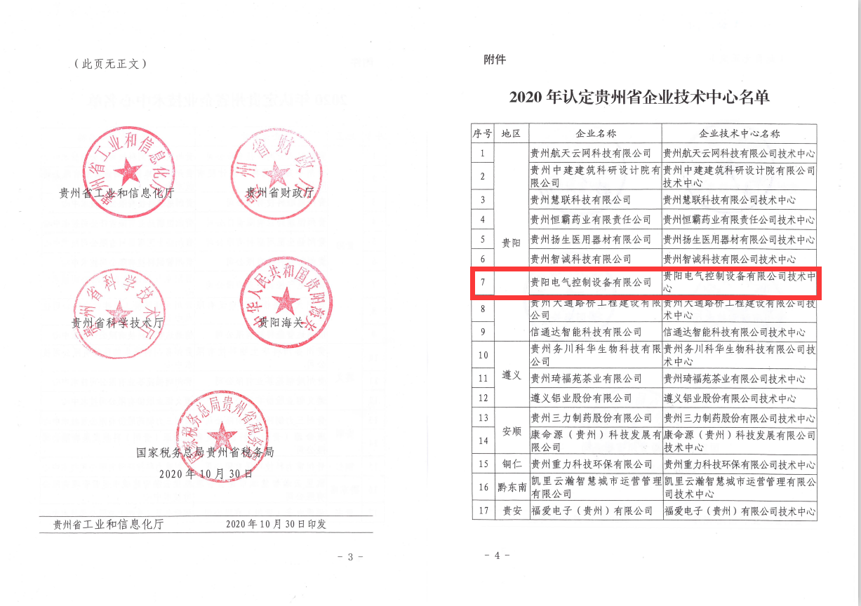 近日,經(jīng)貴州省工業(yè)和信息化廳、貴州省財(cái)政廳、貴州省科學(xué)技術(shù)廳、貴陽海關(guān)、國家稅務(wù)總局貴州省稅務(wù)局五部門聯(lián)合下發(fā)《關(guān)于發(fā)布2020年貴州省企業(yè)技術(shù)中心認(rèn)定及更名企業(yè)情況的通知》(黔工信科技[2020]83號(hào))文件,根據(jù)《貴州省企業(yè)技術(shù)中心認(rèn)定管理辦法》(黔工信科技[2019]7號(hào)),按照有關(guān)要求和工作程序,經(jīng)組織專家評(píng)審、五部門共同審定并公示,認(rèn)定貴陽電氣控制設(shè)備有限公司為貴州省企業(yè)技術(shù)中心。