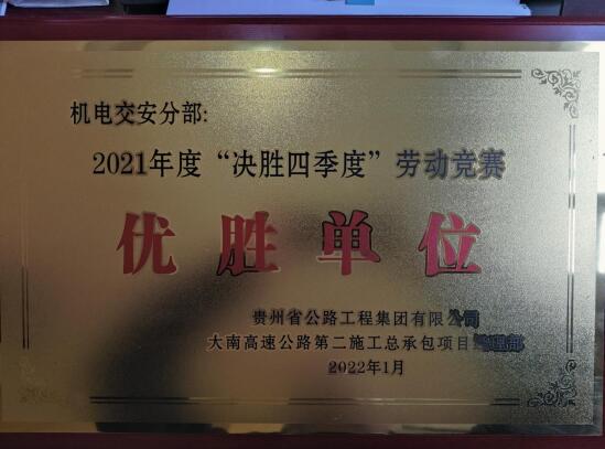 貴控公司大南機(jī)電交安分部自2021年6月進(jìn)入施工現(xiàn)場(chǎng)以來(lái),面對(duì)工期日趨緊張,施工界面提交晚等困難,按照集團(tuán)公司黨委的要求和部署,為確保2021年度各項(xiàng)機(jī)電交安工作的有序展開(kāi),機(jī)電交安分部制定了一系列精細(xì)化的施工策略,特別是開(kāi)展勞動(dòng)競(jìng)賽以來(lái),充分調(diào)動(dòng)各施工班組和管理人員的建設(shè)積極性,扎實(shí)推進(jìn)各項(xiàng)施工目標(biāo)任務(wù),每日加班匯總完成工程量清單,爭(zhēng)分奪秒地有效管控工程進(jìn)度,同時(shí),抓好施工質(zhì)量和施工安全。終于在2021年12月底全面完成了承建合同段32公里的機(jī)電交安施工目標(biāo)任務(wù),據(jù)悉,為展現(xiàn)貴州公路集團(tuán)“鐵軍”精神和企業(yè)風(fēng)采,“干好再建”工程,進(jìn)一步開(kāi)拓云南市場(chǎng),由貴州公路工程集團(tuán)有限公司大南高速公路第二施工總承包項(xiàng)目部組織實(shí)施了這次勞動(dòng)競(jìng)賽活動(dòng),共有七家項(xiàng)目參建單位獲得表彰,為2022年實(shí)現(xiàn)大南高速公路全線(xiàn)通車(chē)任務(wù)奠定了良好基礎(chǔ)。