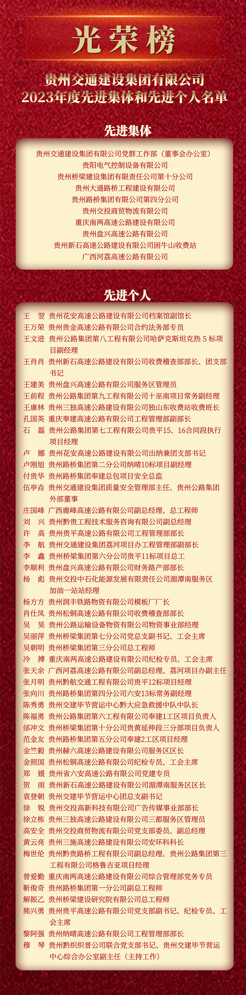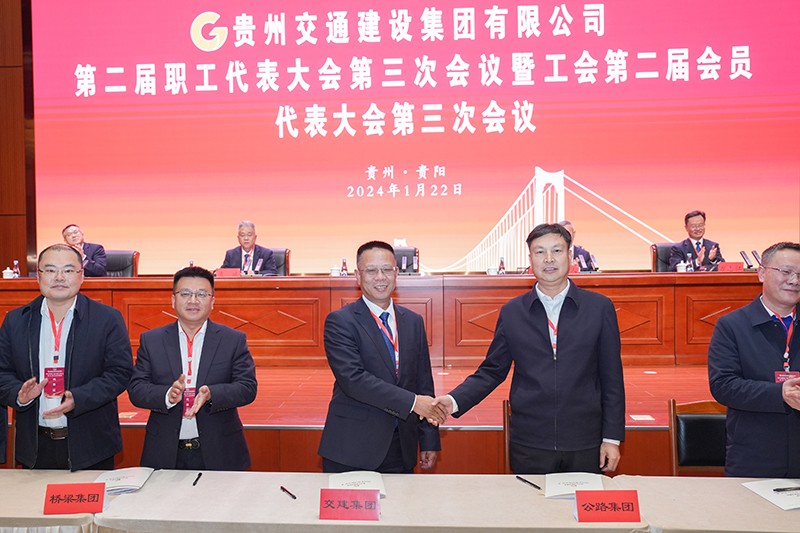 會議還傳達(dá)學(xué)習(xí)了全省交通運(yùn)輸工作會議精神,通報(bào)了集團(tuán)工會2023年度財(cái)務(wù)決算及2024年度財(cái)務(wù)預(yù)算情況。簽訂了貴州交通建設(shè)集團(tuán)有限公司2024年度目標(biāo)責(zé)任書和《集體合同》,頒發(fā)了2023年度集團(tuán)先進(jìn)集體和先進(jìn)個(gè)人榮譽(yù)獎牌及獎狀。